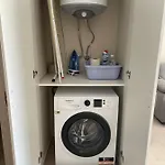 تمّ تجهيز الشرفة ومنطقة الجلوس بالتلفزيون بشاشة مسطحة مع قنوات فضائية والتلفزيون متعدد القنوات، فضلاً عن المكواة واللوح الكيّ ومرافق لكي الملابس ومكيف الهواء لتوفير الراحة القصوى للضيوف. كما تمّ تجهيز مكان الإقامة المكون من 1 غرفة نوم بالصالون. تتوفّر أسرّة مع وسائد محشوة بالريش تحت تصرف الضيوف. استمتع براحة الحمام في هذه الشقة المجهزة بمجفف الشعر وملاءات الحمام والمناشف. بالإضافة إلى ذلك، ستجد المرحاض المنفصل والدوش.